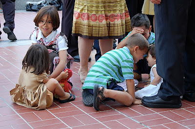 It was hilarious to watch the kids. They were loving it! Look at Cyra leaning over to get a better look at the kissing. The boys were just giggling and covering their eyes. So cute.